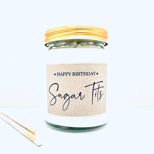 Happy birthday sugar tits handmade soy scented candle : Coconut Milk and Sea Salt
