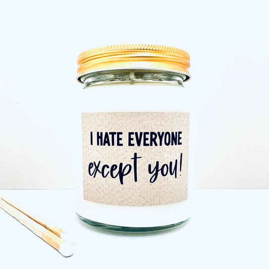 I hate everyone except you handmade soy scented candle : Coconut Milk and Sea Salt