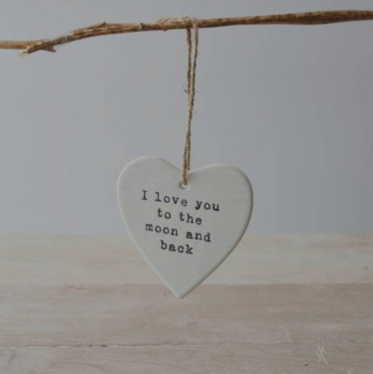 LOVE YOU TO THE MOON AND BACK HANGING CERAMIC HEART 10CM
