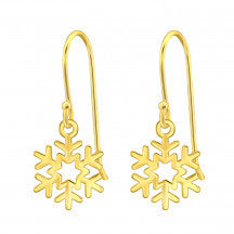 Laser Cut Snowflake - 925 Sterling Silver, Gold Plated Plain Earrings