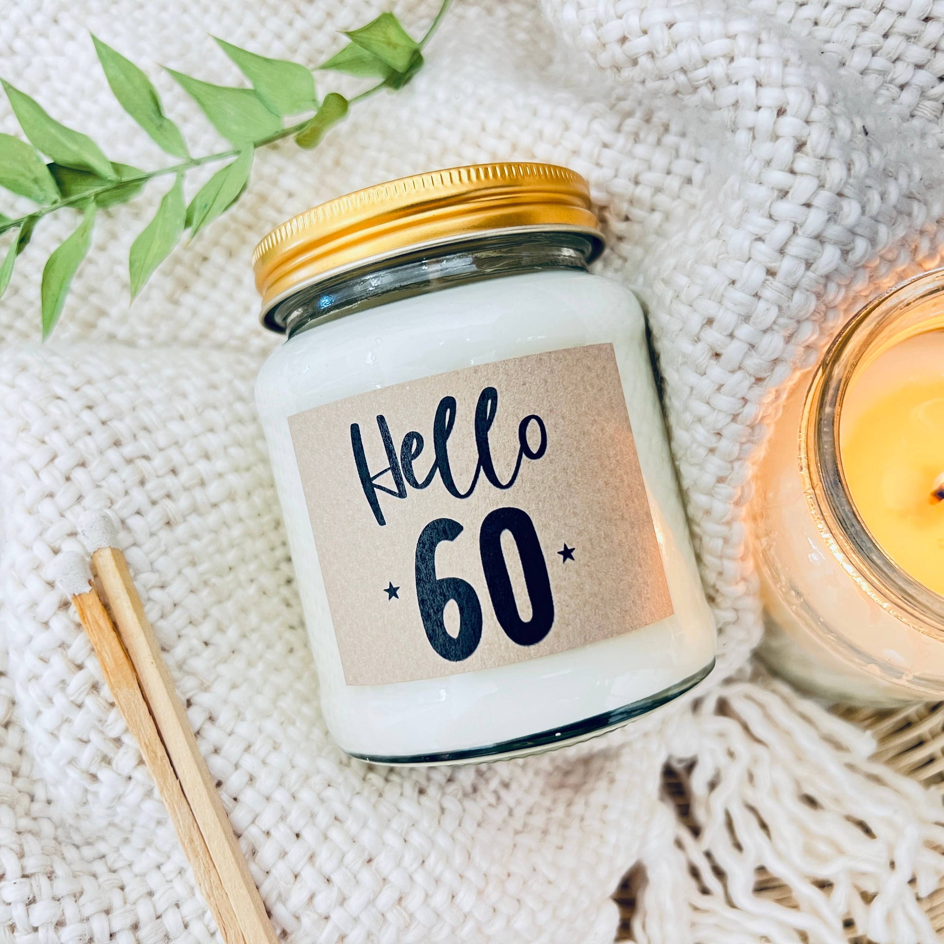 60 Milestone birthday age handmade soy scented candle: Coconut Milk and Sea Salt