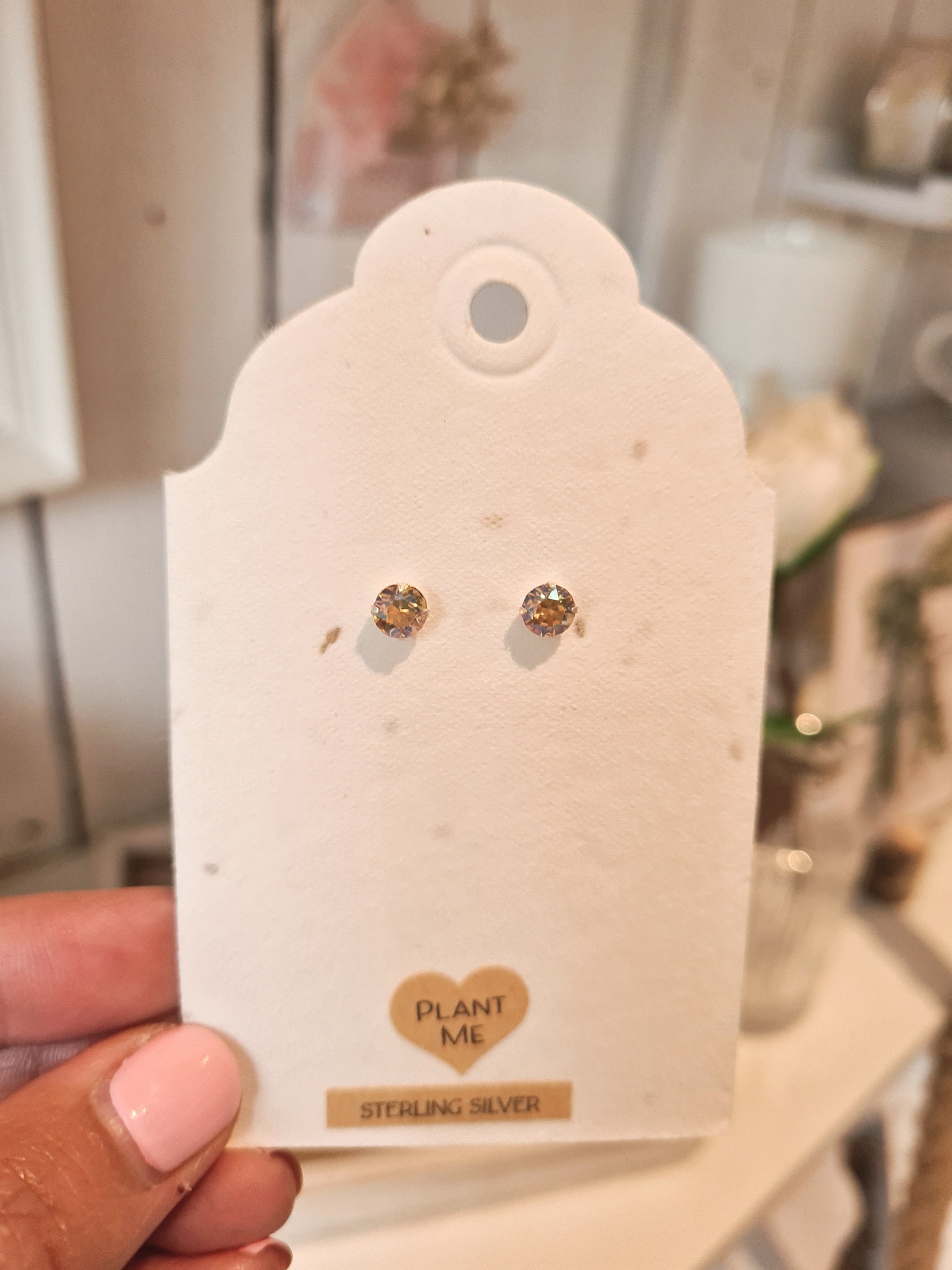 Mounted on wildflower seeded paper. Plant the seeded paper when you have removed the Earrings. Making this a gift that just keeps giving.