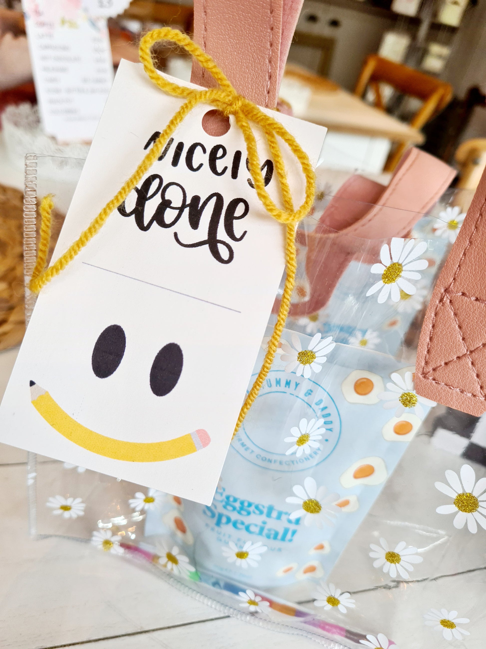 Bag includes a bag of sweets and multi coloured pencil and a gift tag where you can add their name.