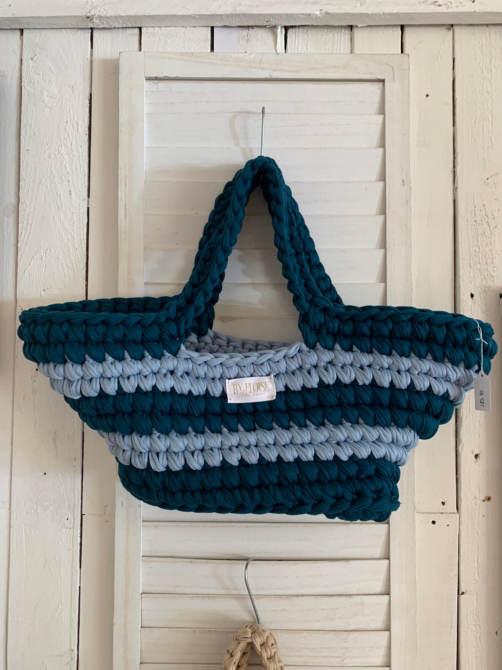 Each bag in the Eloise The label range is handmade using recycled Tshirt yarn.