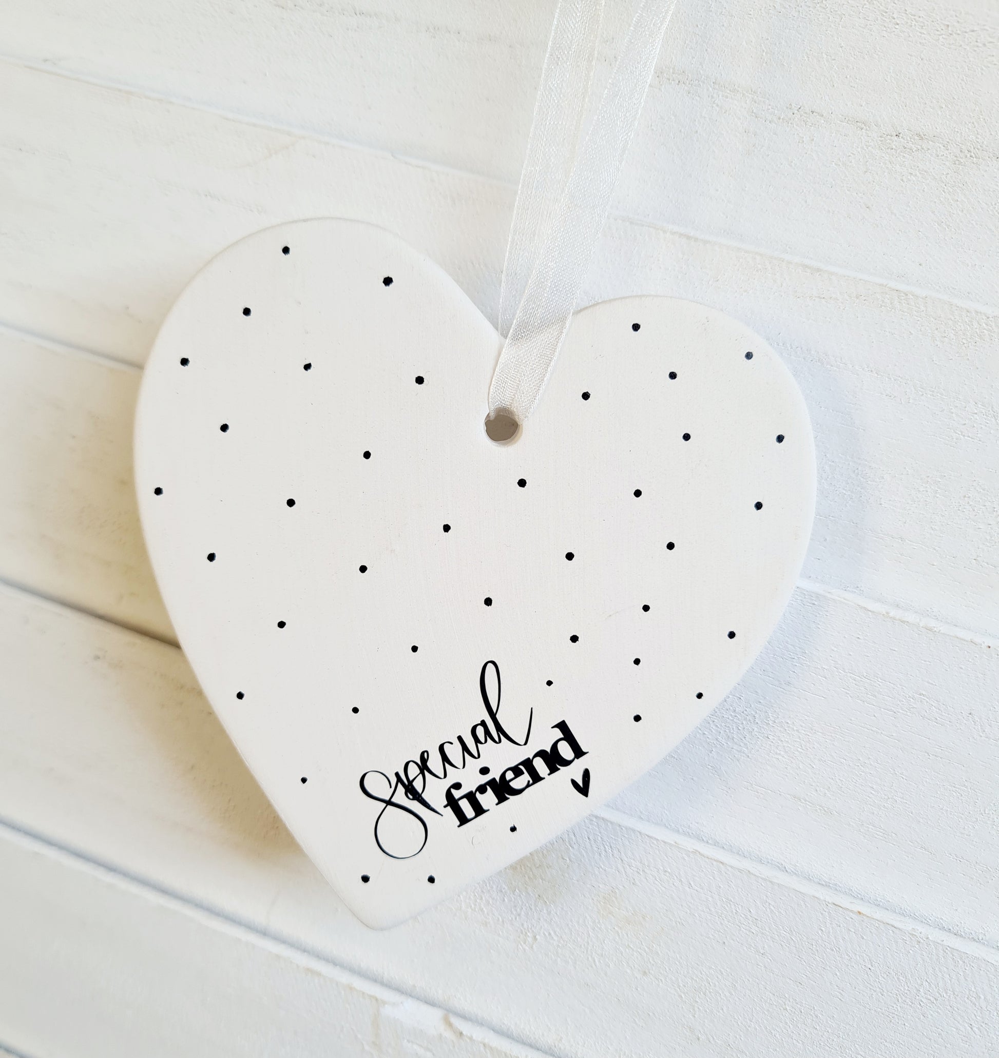 A chic white ceramic heart decoration with the sentiment ' Special Friend'