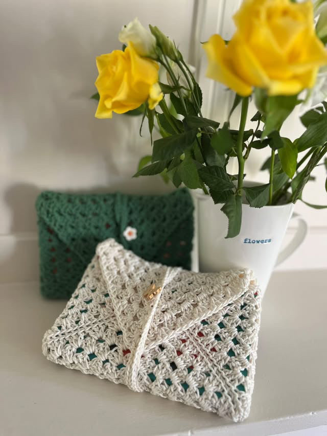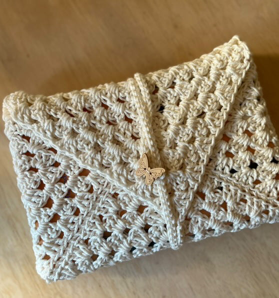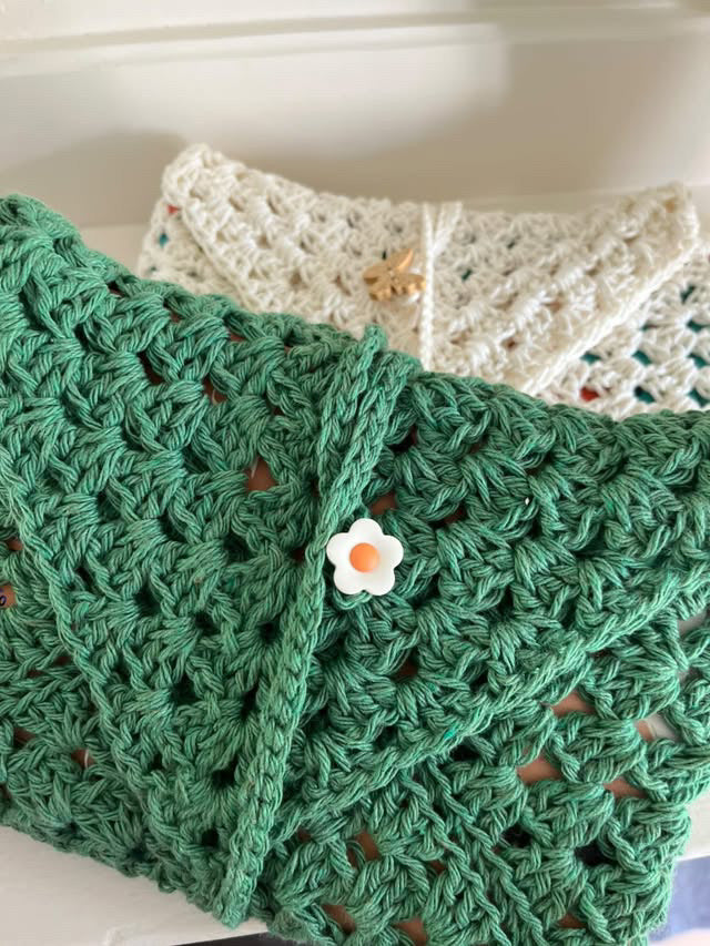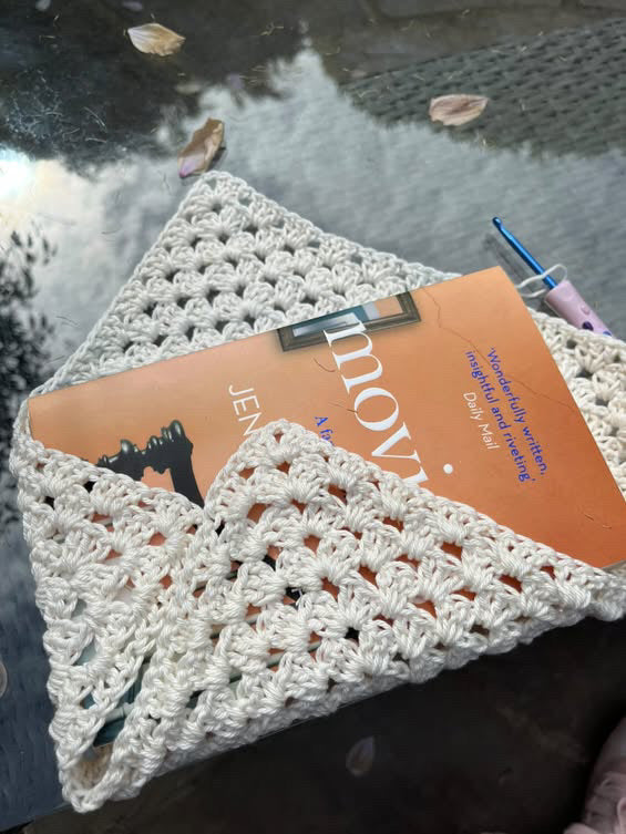 Beautiful handmade crochet Book Sleeve, available in either cream or green.