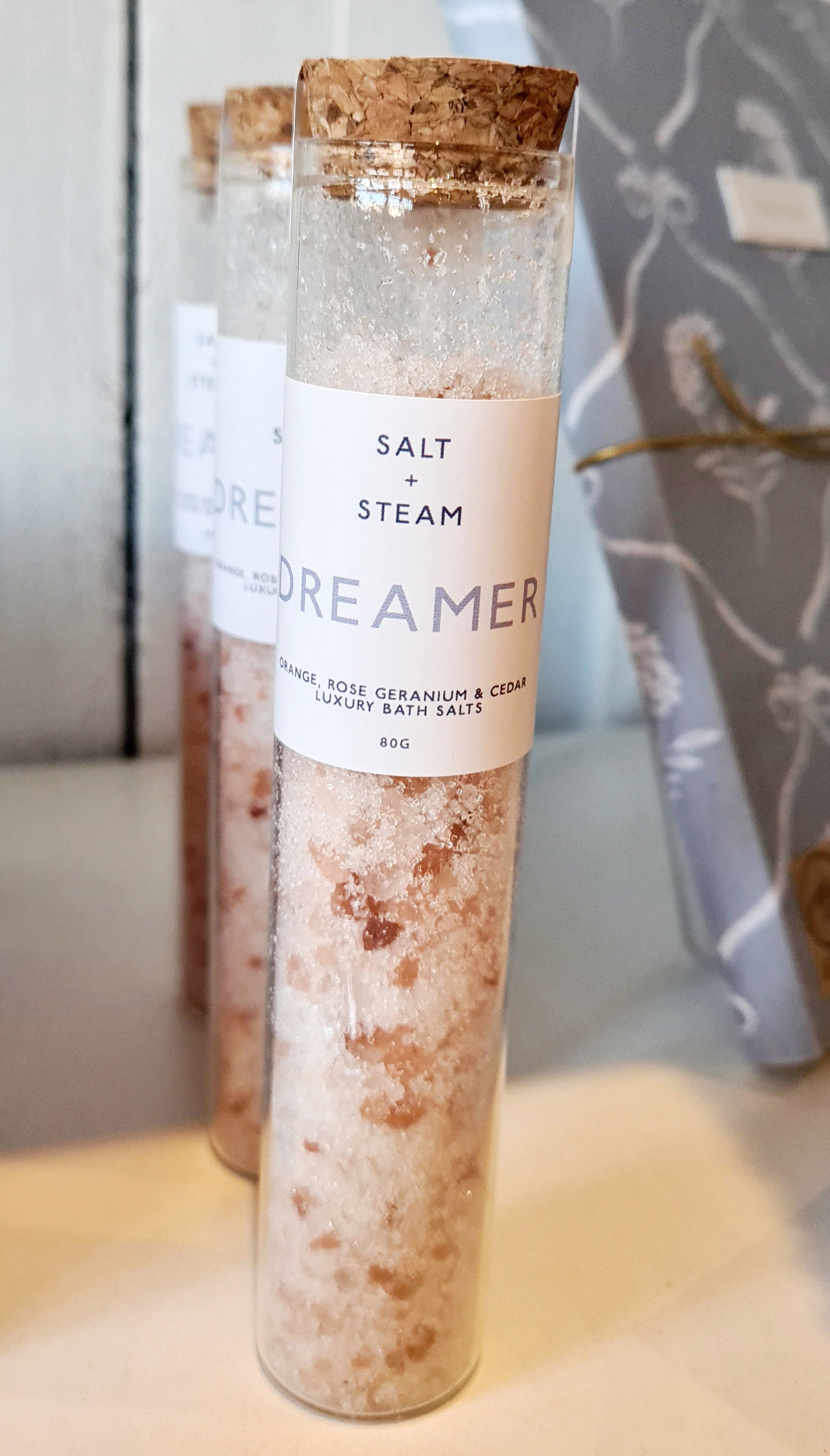 Orange, Rose Geranium & Cedar Dreamy pink bath salts with the heady scent of summer. Floral, fresh and bright! These soothing salts contain a luxurious blend of essential oils including orange, rose geranium, woody cedar and rich frankincense to give you the sweetest of all daydreams.