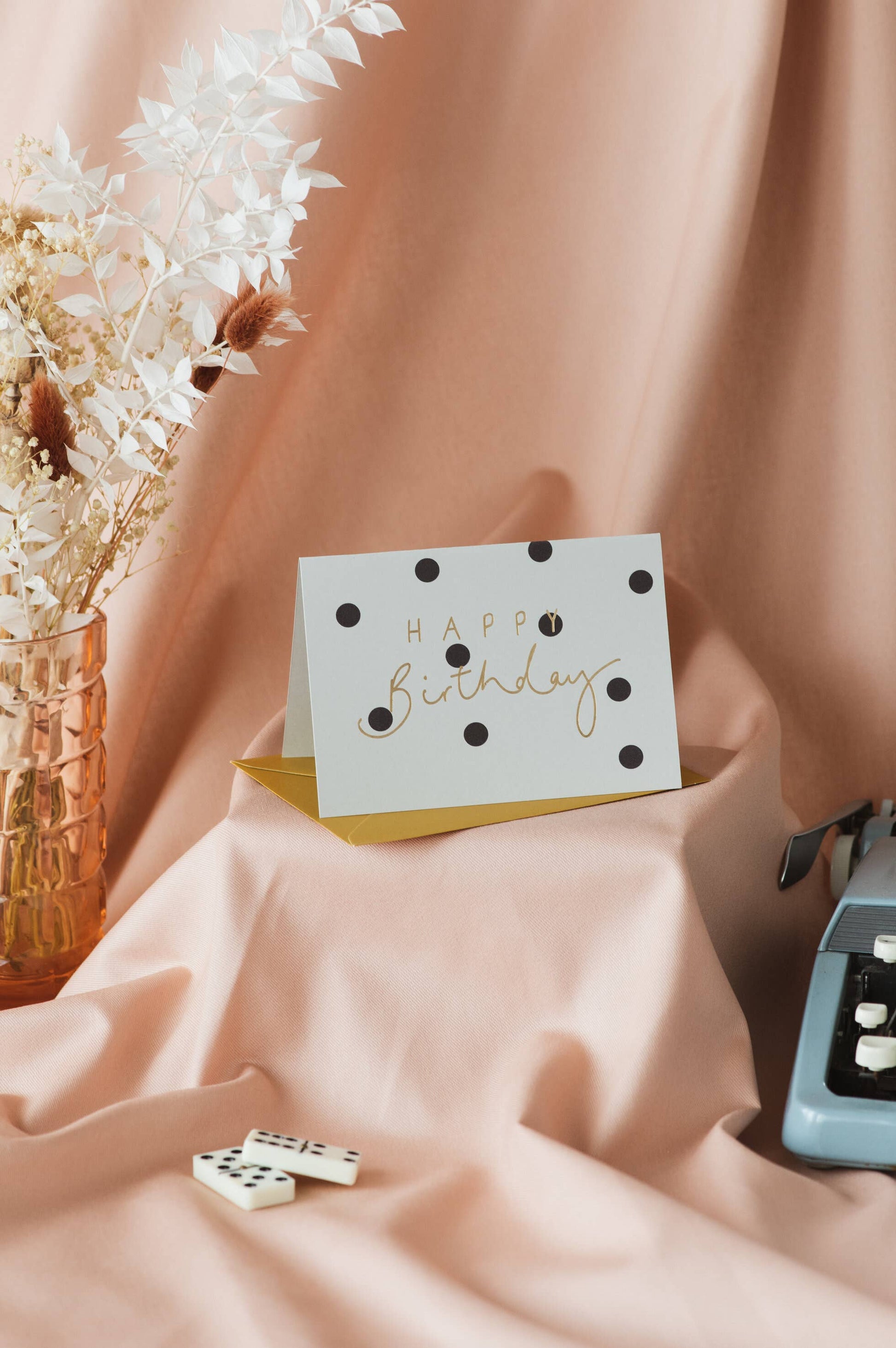 'Happy Birthday' Gold Foil Grey Polka Dot Card