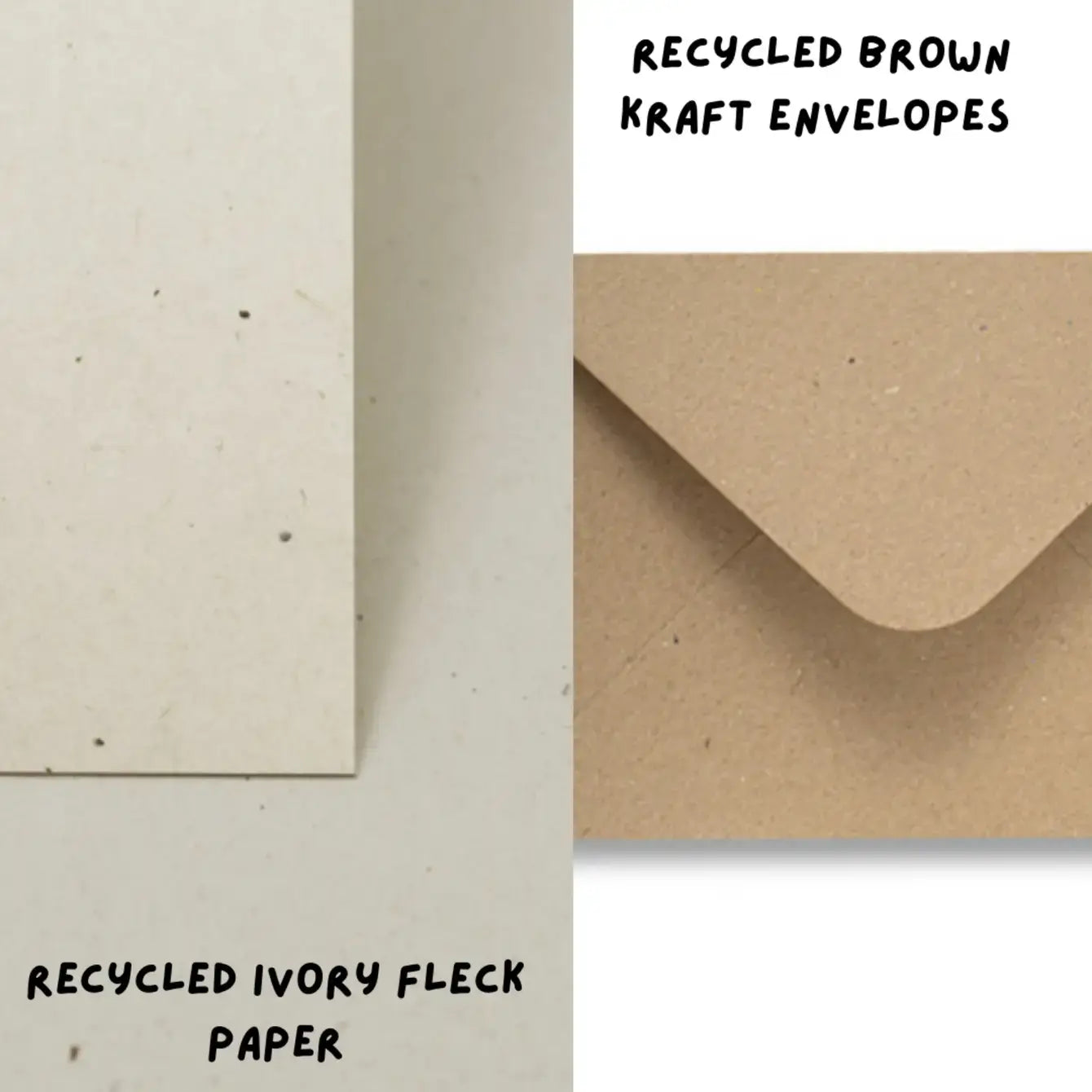 Envelope details: Our brown kraft recycled envelopes are sourced responsibly, made from recycled paper, and produced in the UK.