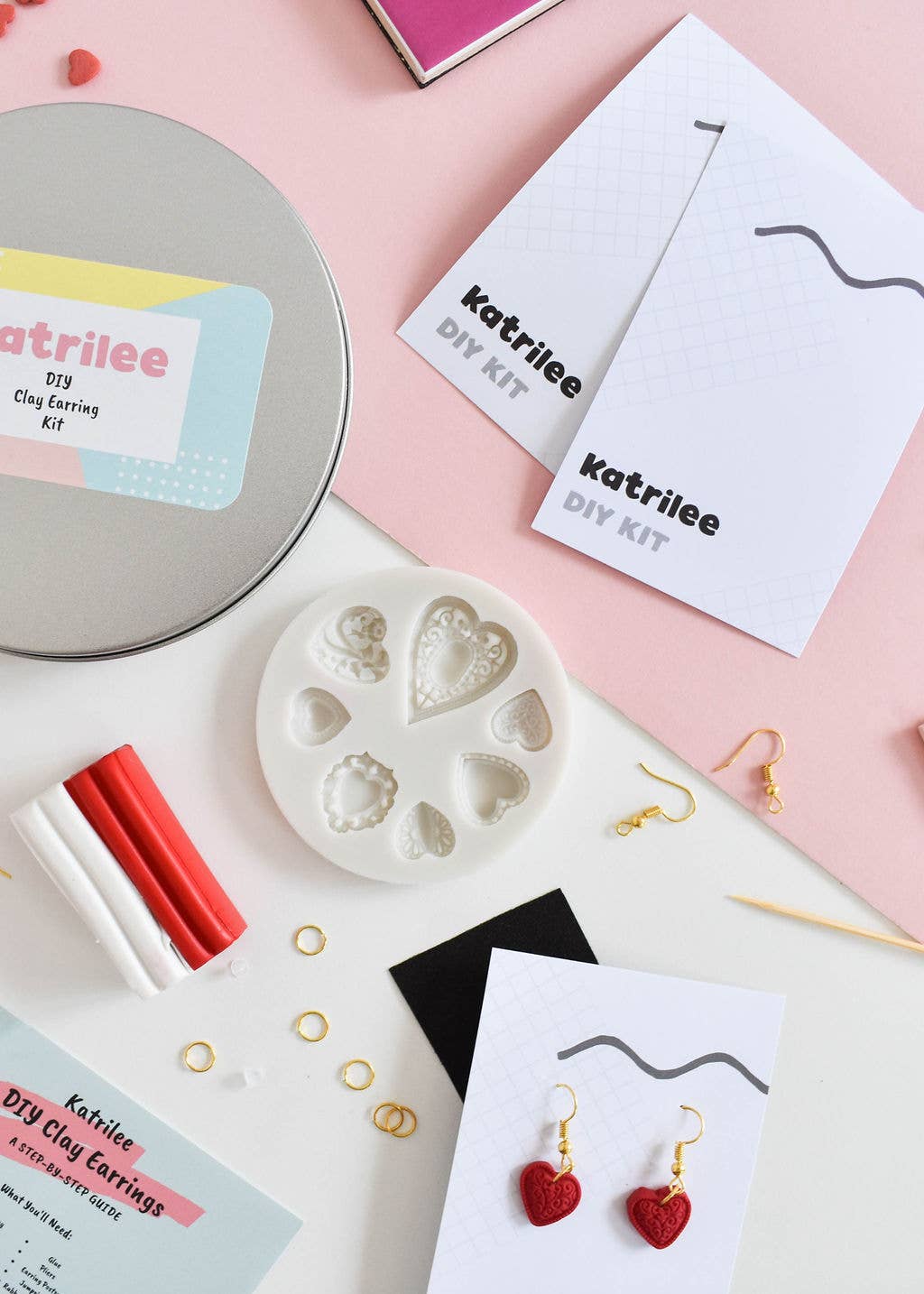 The Katrilee Polymer Clay Earring Kit has everything you'll need to make 2 or more clay Heart Earrings.