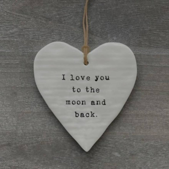 LOVE YOU TO THE MOON AND BACK HANGING CERAMIC HEART 10CM