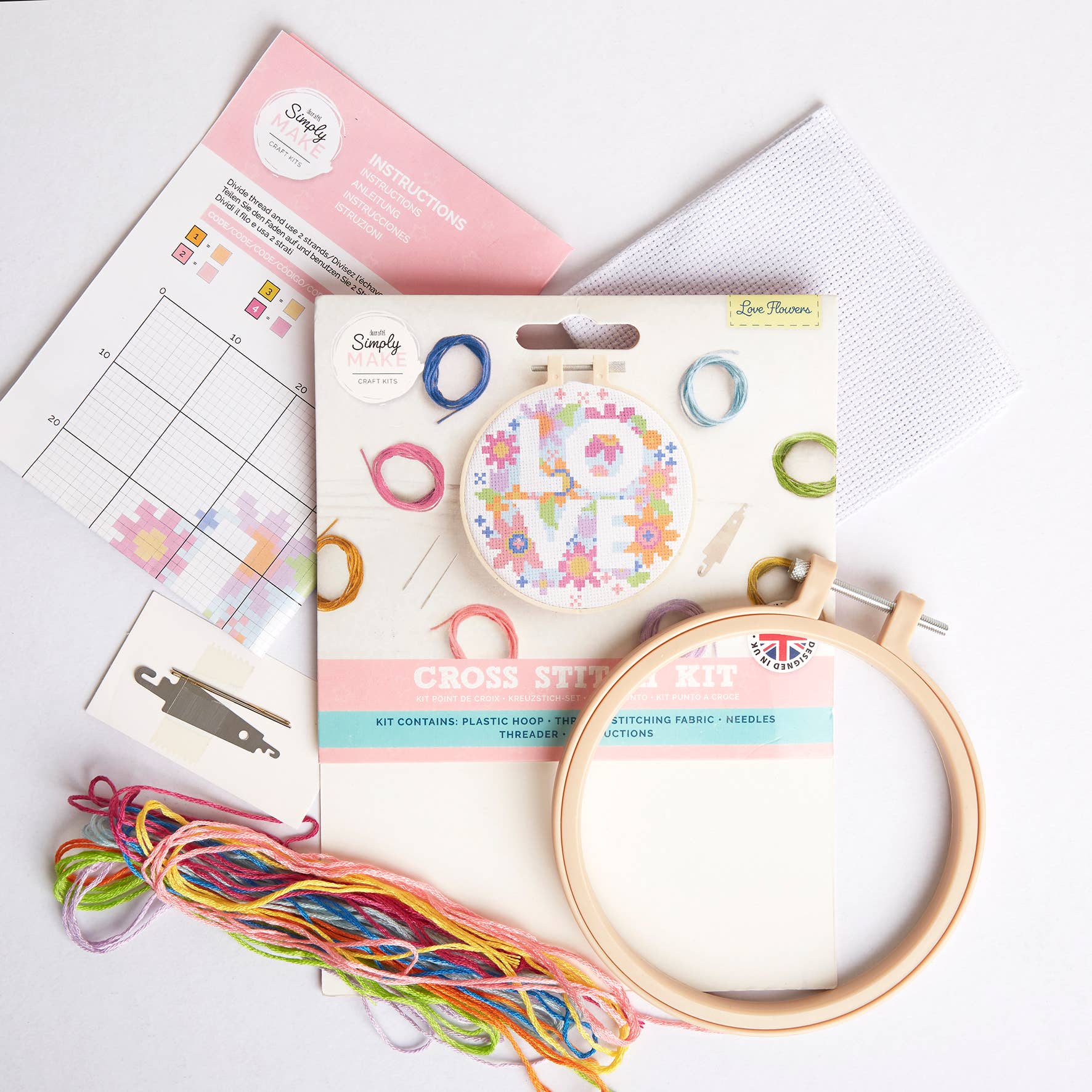 Simply Make Cross Stitch Craft Kit - Love Flowers Design