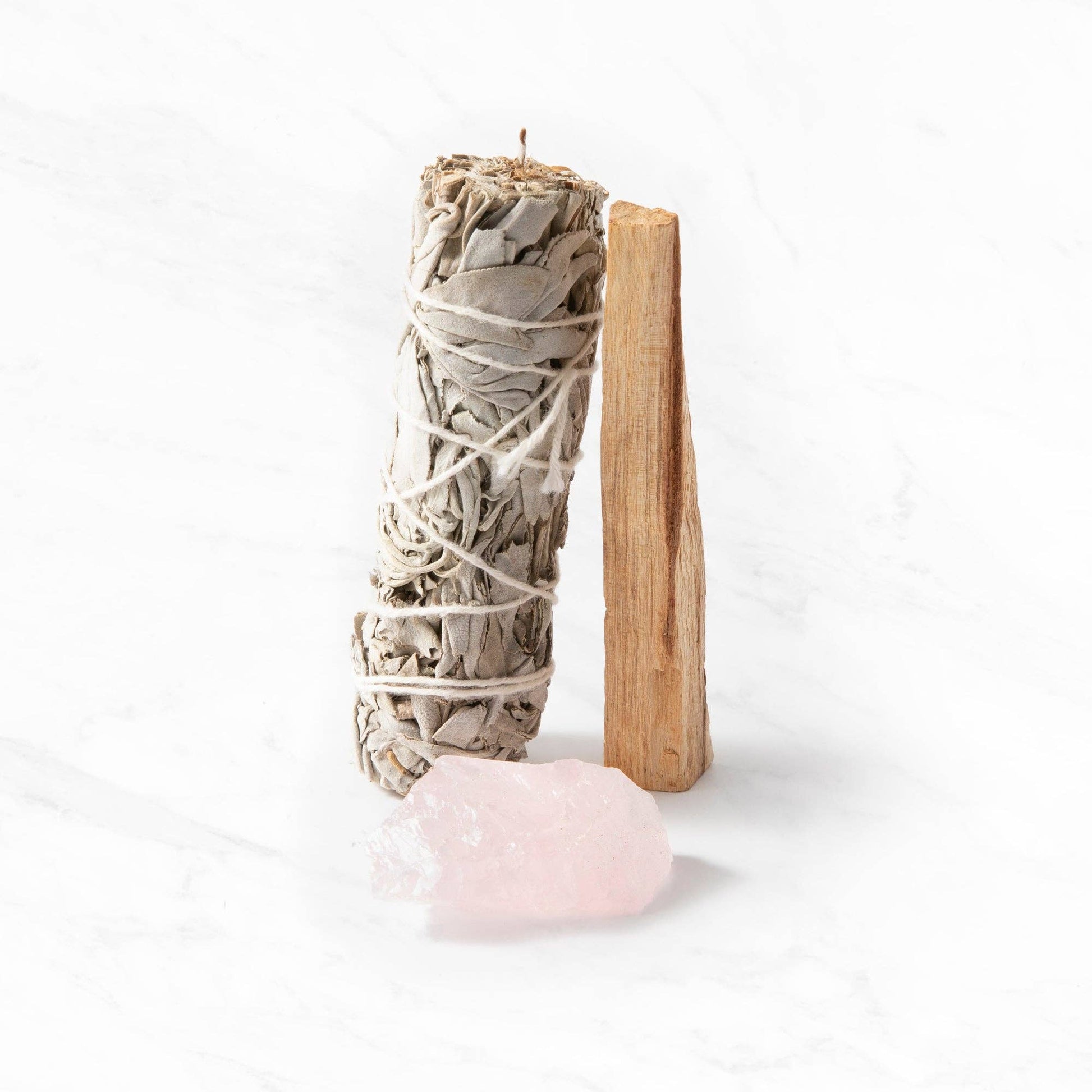 Smudge Ritual Set – Cleanse, Protect & Invite Positive Energy: Rose Quartz