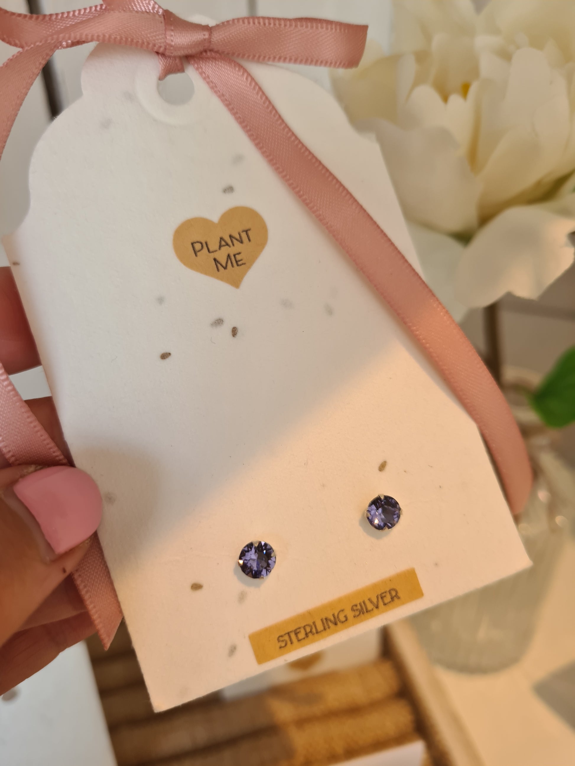 Tansanite Crystal 925 Sterling Silver Ear Studs