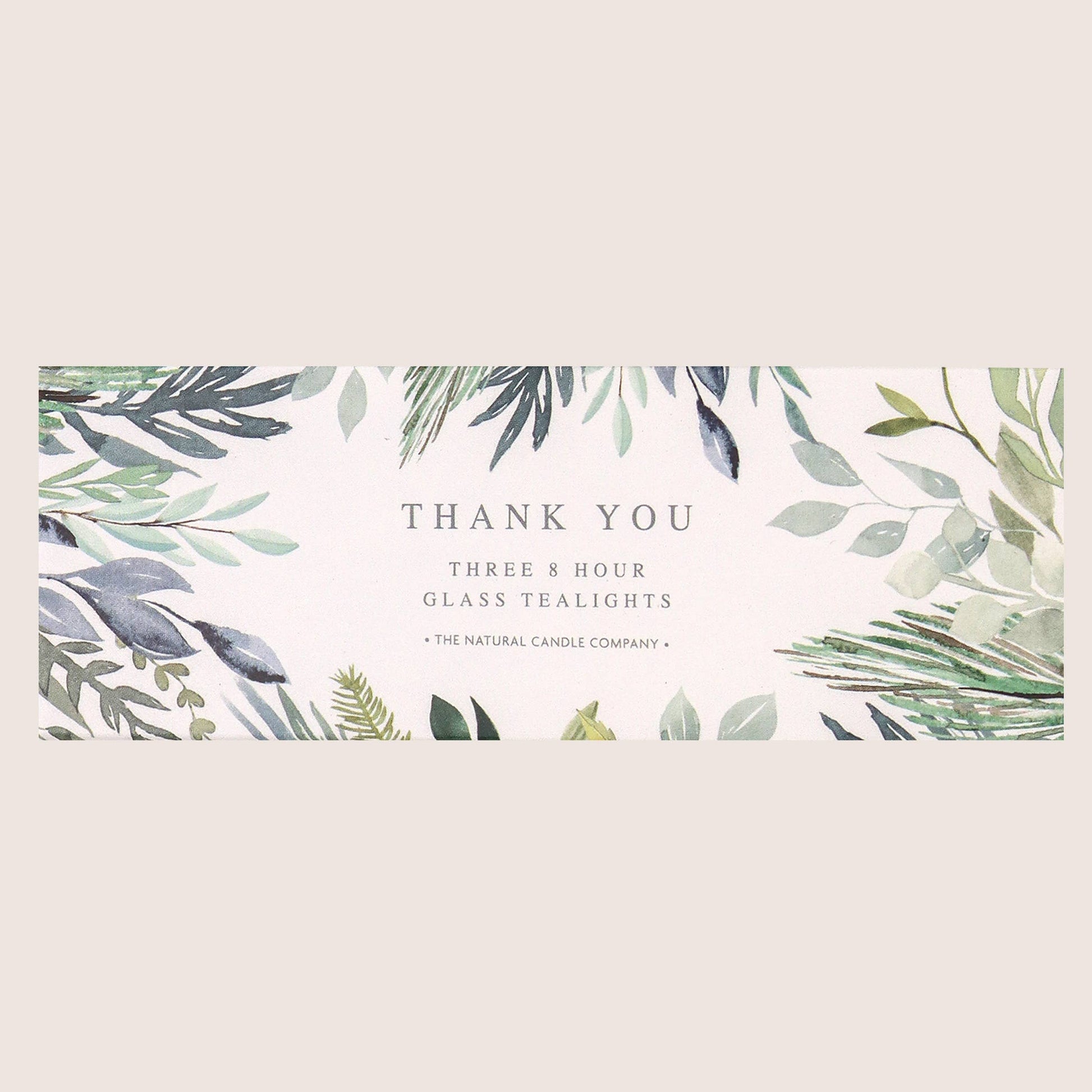 Three luxury glass tealights beautifully scented with lavender, neroli, mandarin, and rosemary.