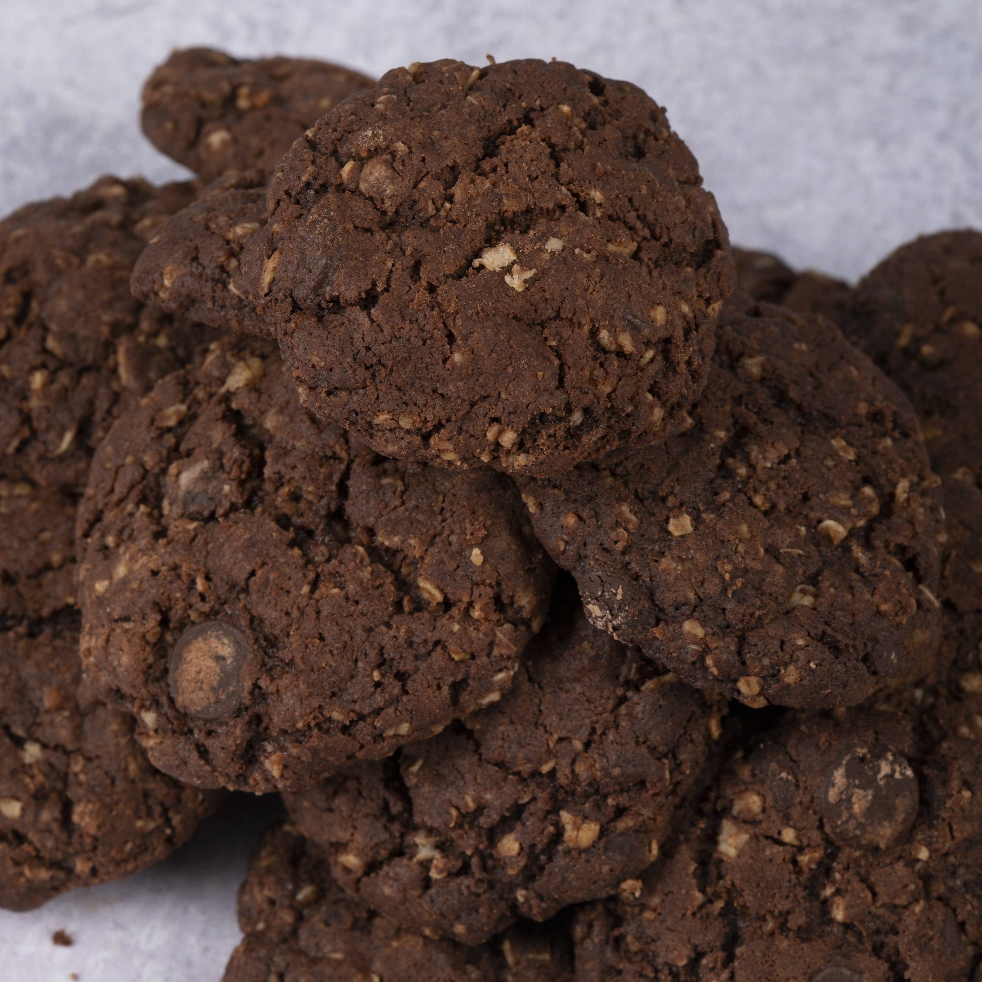 Ingredients Flour (Wheat), Sugar, Oats, Belgian Dark Chocolate (Cocoa Mass, Sugar, Cocoa butter, Emulsifier: Soya Lecithin, Natural Vanilla Flavouring), Cocoa Powder (Cocoa Beans, Acidity Regulator: Potassium Carbonate) Dark chocolate contains 43% minimum Cocoa Solids Allergen Information Contains Wheat, Oats, Soya.